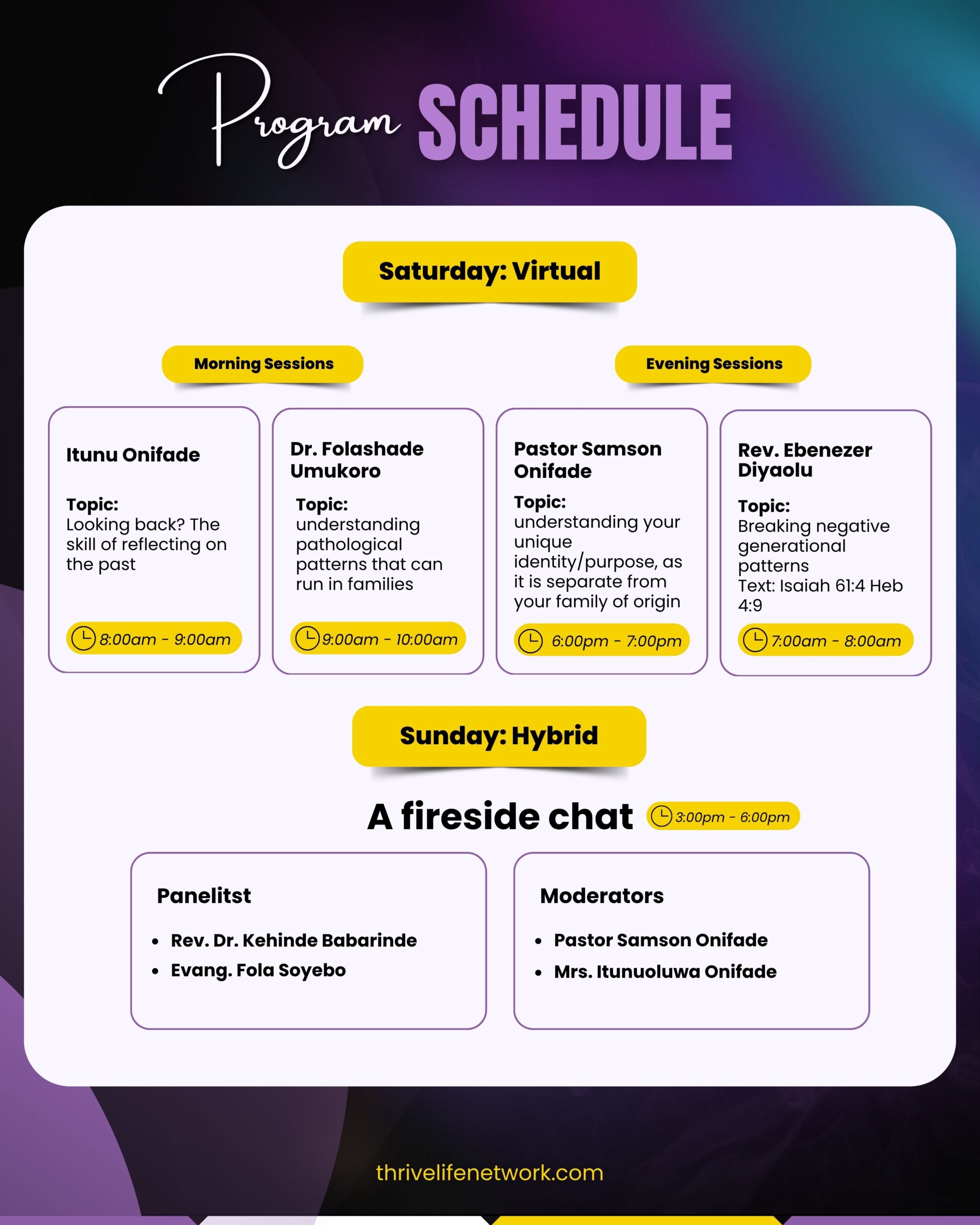 We trust God that through our speakers, there will be a release of light, wisdom, and spiritual impartation for transformation and deliverance. Participants will walk away not only informed but also empowered to build families aligned with God’s purpose.